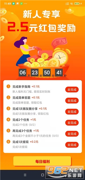1、新用户下载注册赏帮赚app后,有新人专享2.5元红包奖励等你领取,还有每日专享2.2元红包