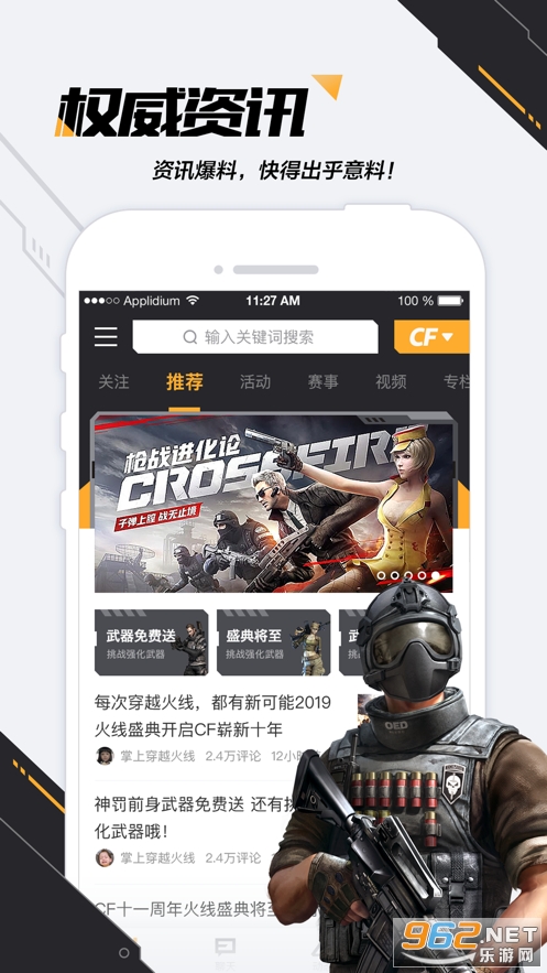 《CF掌上穿越火线》是一款多功能的cf游戏助手,玩家们一方面可以在这里快速的了解到最新的cf游戏资讯,相关的热点动态,在这里查战机,看战队,看仓库,观看各种赛事,参加大大小小的互动,赢奖励,领福利!功能超多,感兴趣就来下载吧!