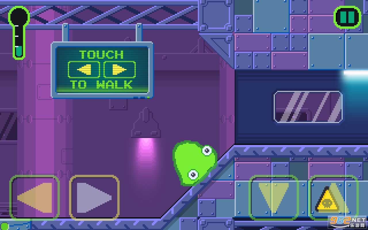 是一款冒险闯关小游戏,有趣的挑战!游戏中,粘液小怪物跑了出来,它想要逃离这个恐怖的实验室,大家快来帮助它躲避危险,收集物品,顺利闯关,闯关逃生吧!