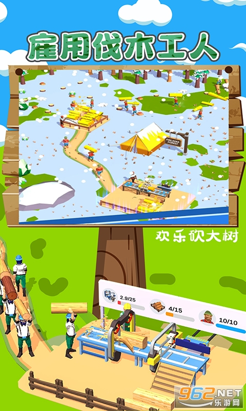 1.游戏就是一个不断地砍树升级的养成过程,玩家提高了自己的伐木效率,能够进入更深层次的树木林中砍树加快自己的资源累积速度;