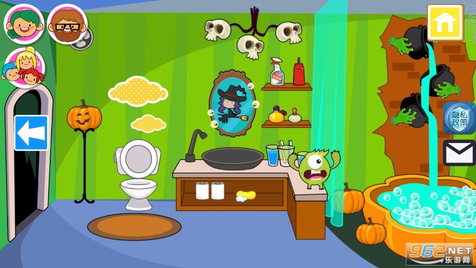 游戏的画风精美可爱,关卡场景非常丰富,延续了此系列游戏一贯作风,没有规则和限制,想干嘛就可以干嘛,尽情的发挥你的想象力,帮助小朋友们了解鬼屋,享受欢乐的游戏时光!