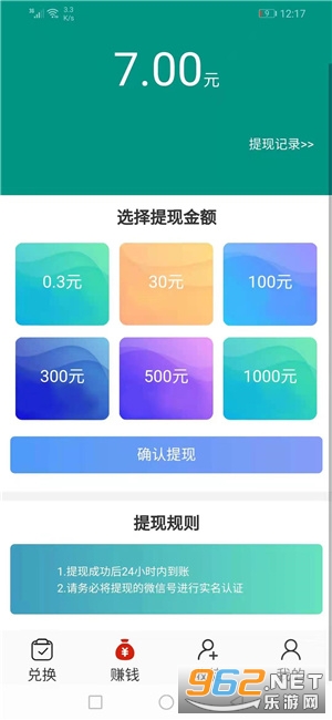 提现、0.3元起提现,24小时内到账。