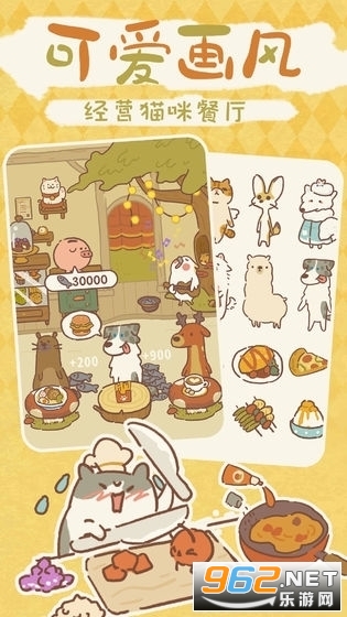 用获得的小鱼干和星星来购买餐厅设施,餐厅设施越多来的客人就会越多。