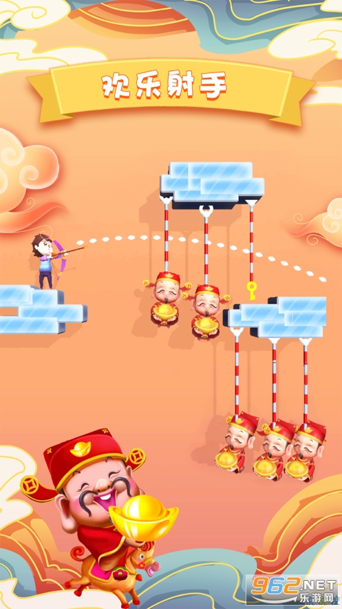 一款射击绳救财神拿到红包的游戏,玩起来似乎很简单,考验的是玩家的射击速度和准确度,千万不要慌张,最大的可能就是多射财神,这样财神就会给你它的红包,每个财神手里都有宝藏,玩家要做的就是为了得到整个宝藏,用红包代替奖品。