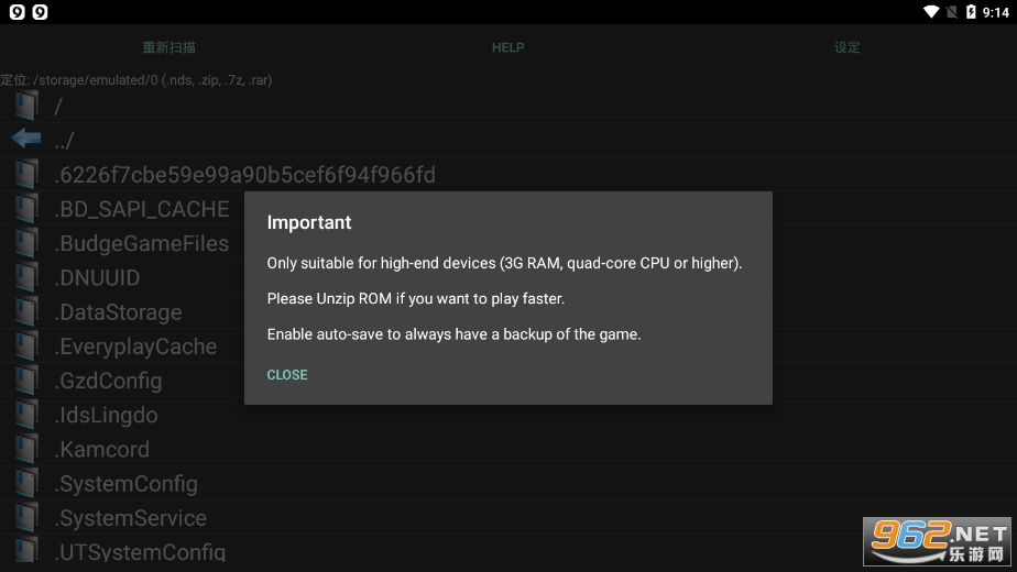 -将您自己的NDS游戏文件复制到SD卡或内存。(例如/ sdcard / SuperNDS /)