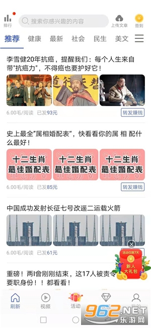 1、新用户下载注册蓝莓转app就能获得1.92元现金奖励,转发文章单价0.6元/阅读
