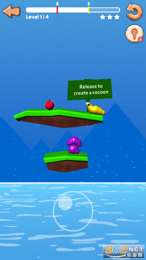 为了食物,奋勇向前吧。坚定不移的信念铸就了毛毛虫坚韧的体魄,即便是炸弹,也只是所谓弹跳起步的道具而已,你已经被强化了,快去吃光那颗诱人的苹果吧。