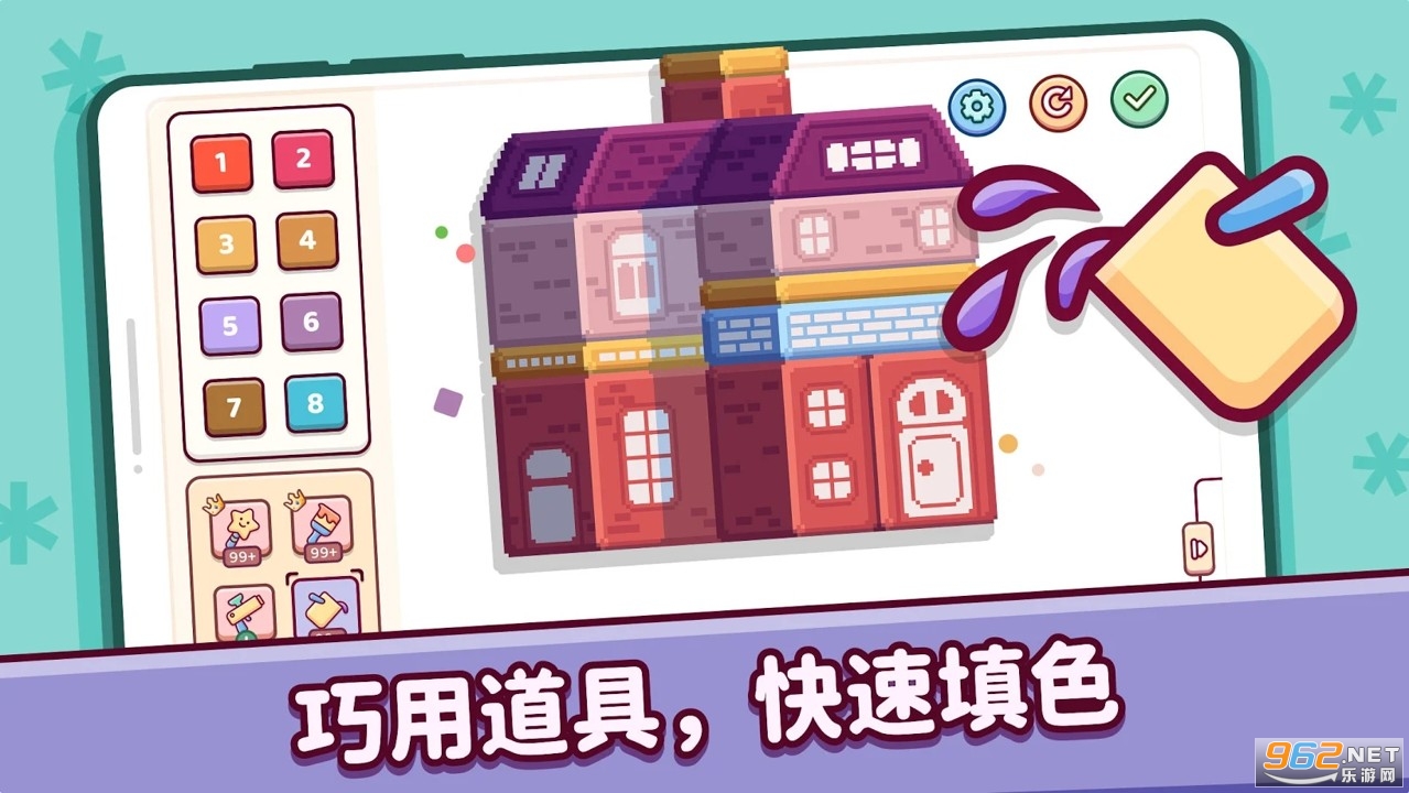 像素乐趣2是一款非常适合消磨时间的绘画手游,这里有非常多样的图案可以选择,完成所有的图案建筑以及场景,可以点亮一整个街道,让街道充满鲜艳的色彩。