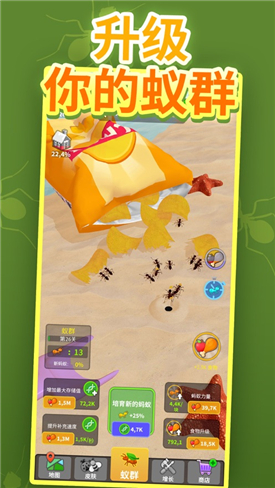 升级和扩张你的领地,使之成为一个强大的蚂蚁帝国!