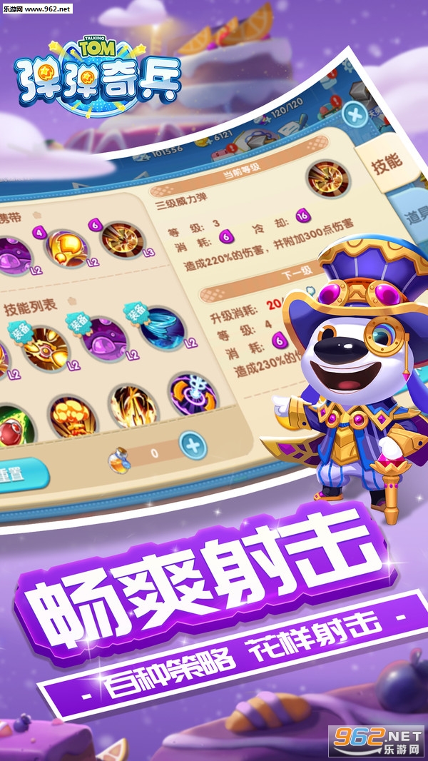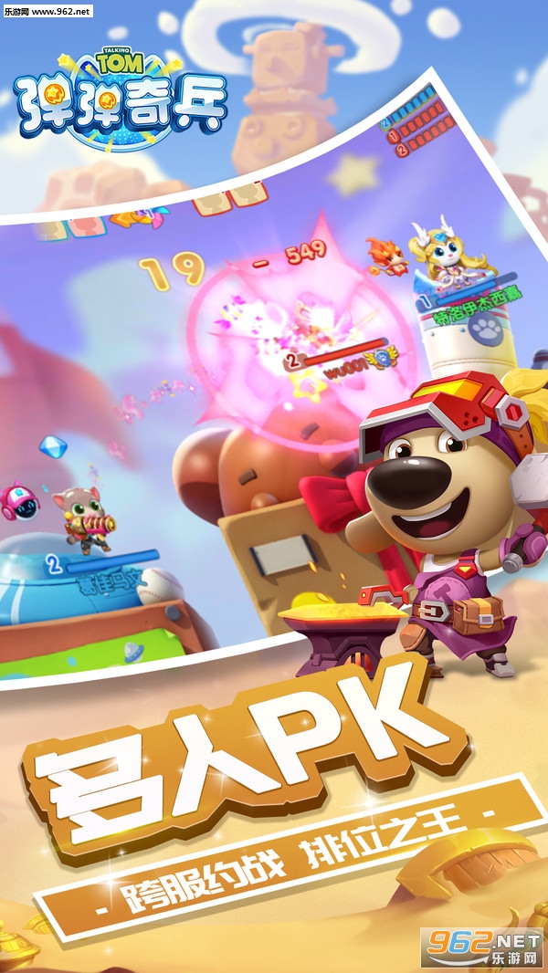 汤姆猫弹弹奇兵游戏是一款支持多人同时在线竞技的弹射类休闲游戏,以大家所熟悉的汤姆猫为主题,采用3D引擎打造超酷炫精美画面场景,更提供有海量时尚靓丽的服装可供玩家自由选择搭配,让你的汤姆猫成为全场最炫酷的存在。游戏中玩家还能与好友一起组队PK竞技,看看谁才能最强弹射之王吧。