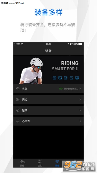 支持标准蓝牙协议连接智能头盔,踏频,心率计以及更多智能设备
