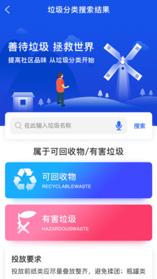 通过垃圾名称快速精准的查询垃圾所属分类知识。