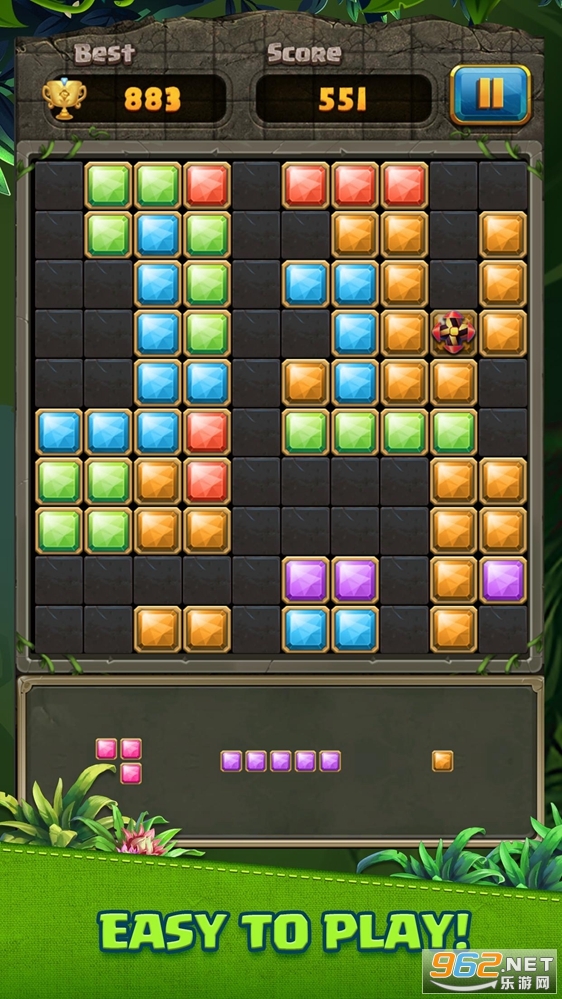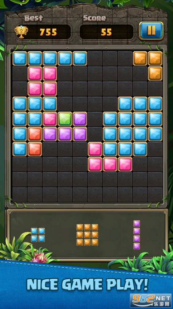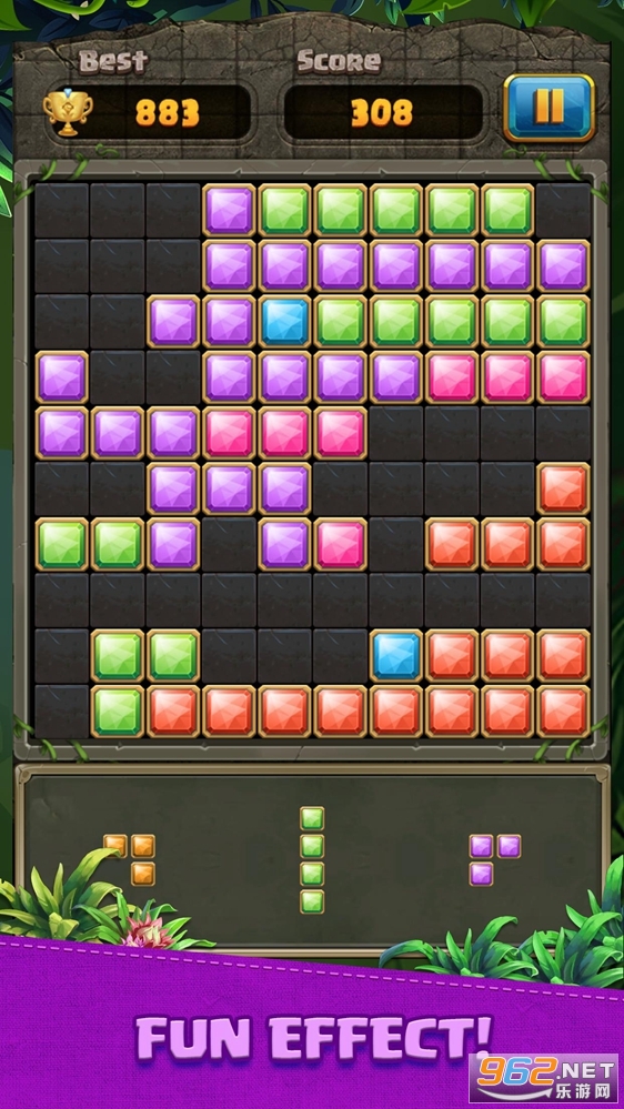趣味的拼图益智游戏,下方会给出三种不同的方块,玩家可以选择一个拖入到方框中,放在合适的地方,然后再次选择再次拖入,横或竖连接完成可以进行消除,看看你最终能得到多少分数,喜欢的朋友可以下载试试。