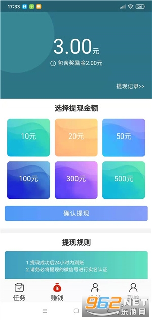 2、首次满0.3元提现,每天可申请提现一次,提现预计24小时内极速到