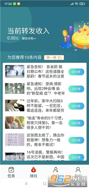 1、新用户下载首次转发送3元,转发文章单价1元,每天签到也有奖励