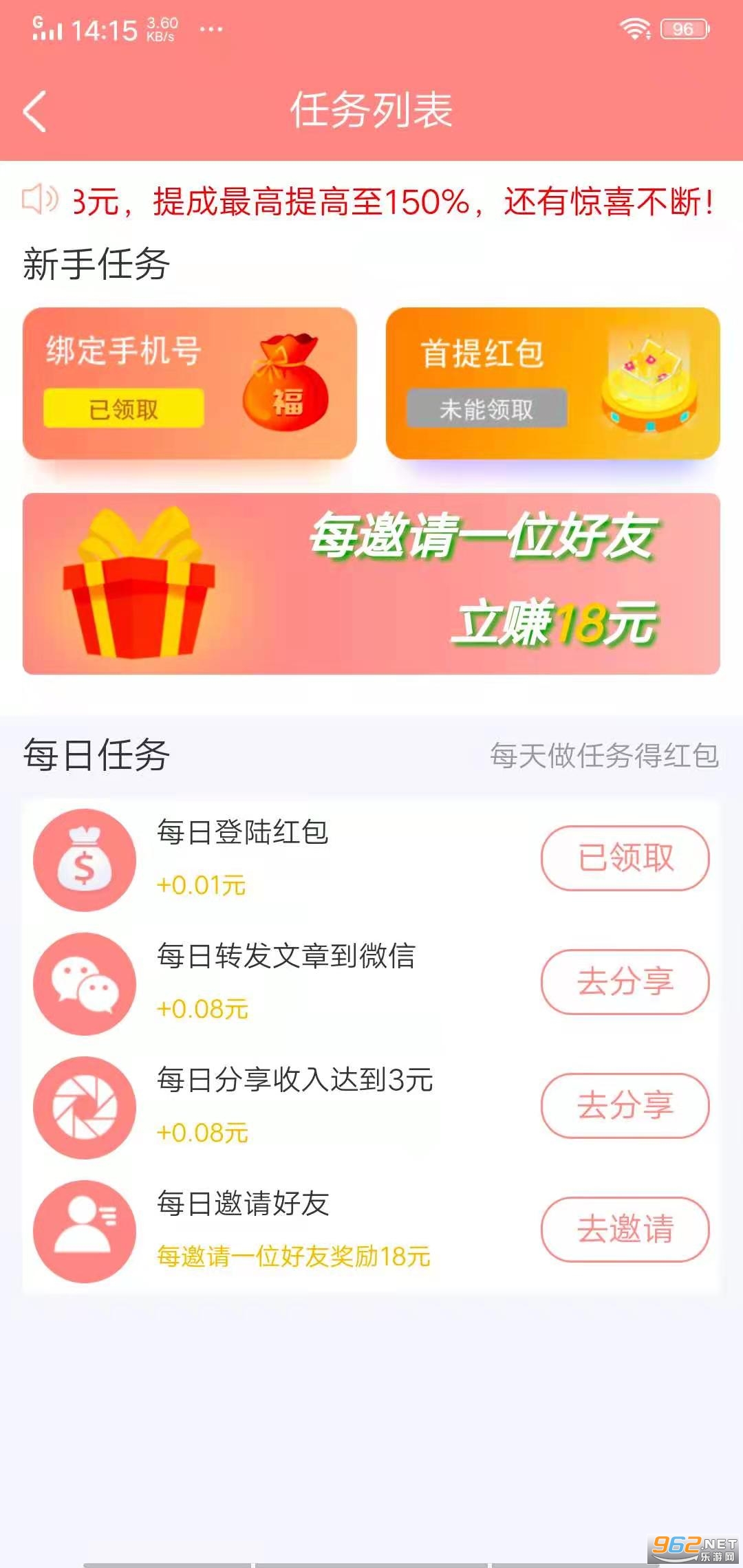 4、邀请好友参与文章转发,可获得高达18元/位现金奖励,后续徒弟每次提现师傅可得1元!