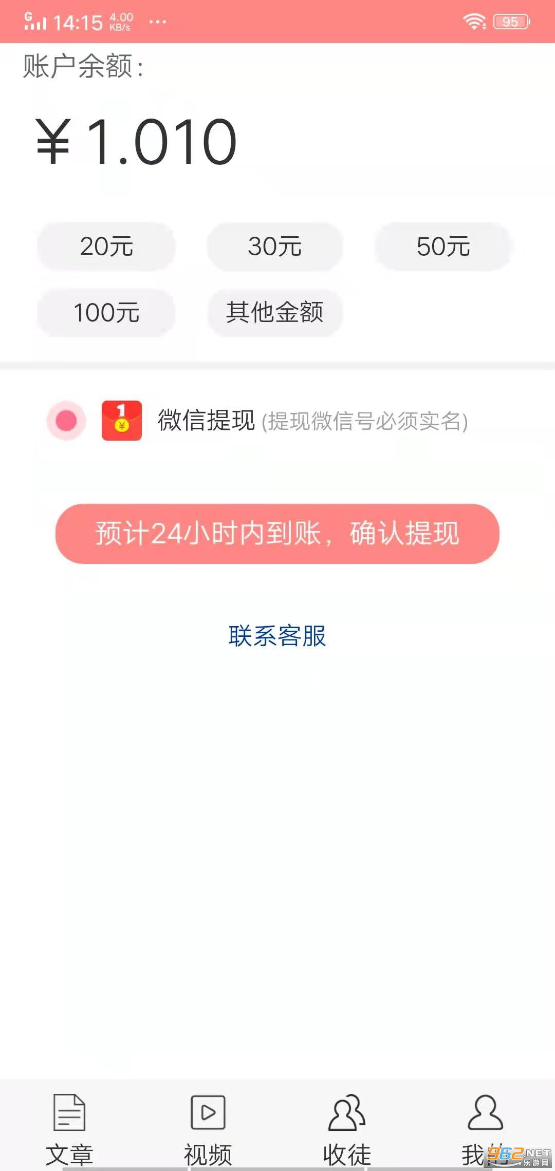 神鹅网转发收入满20元可申请提现,支持零钱,一个工作日内迅速到账,无手续费!