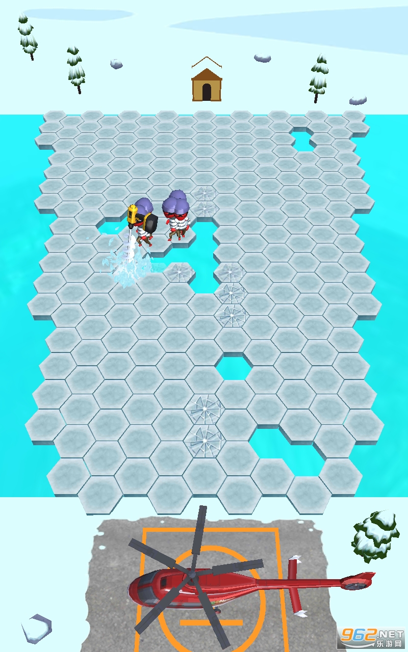 点击以撞碎冰块,打孔以阻止敌人的前进,将敌人包围在洞中并将其全部击沉,不要让敌人到达直升机场