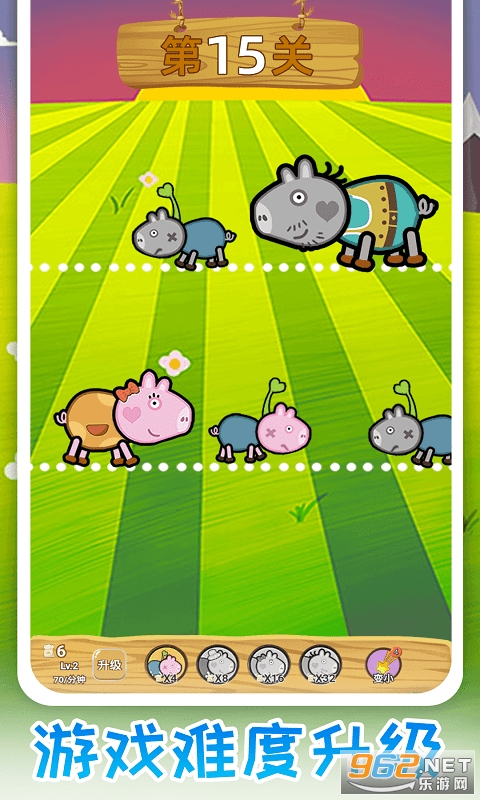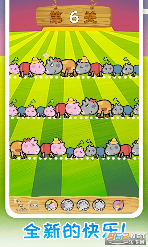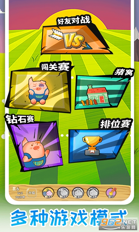 3、通过关卡胜利所获得的奖励,升级饲料,以更快速的放置更多的猪猪,击败对手