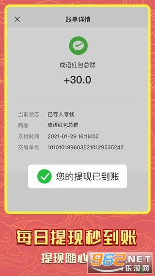 《成语红包总群app》玩法非常的简单,用户只需要通过这款软件不断的闯关成功就可以获得可观的收益,重要的是它里面的成语词汇量非常的大,新手登录福利多多,试玩直接得0.6,不仅如此用户闯关还可以获得奖励,平台的提现到账速度非常的快,赶快来体验一下吧!
