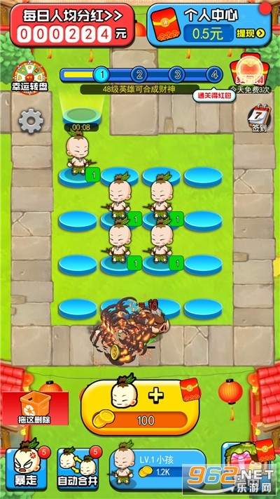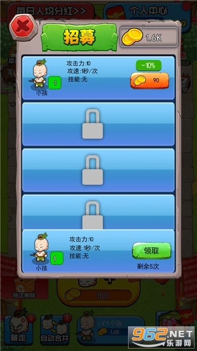 我要当盟主App,一款放置类闯关赚钱软件,通过放置各种Q版卡通人物来挂机赚钱,每次通关都能获得红包奖励,当人物等级达到满级时,还有机会获得高额分红奖励,赶快来我要当盟主打造最强部落,轻松赚现金吧!
