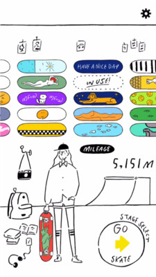 画风比较的简约,独特的手绘活动,各种各样的滑板,让人选的眼花缭乱。