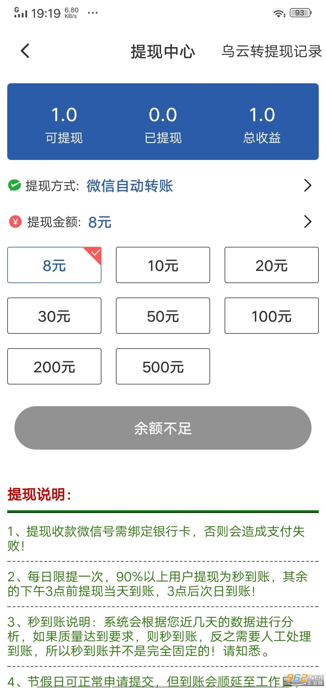 乌云转永久8元提现门槛,支持,一个工作日内审核到账,不收取任何手续费!