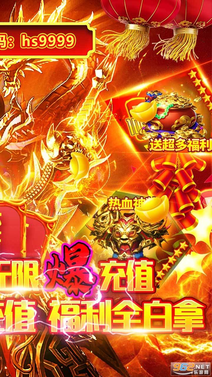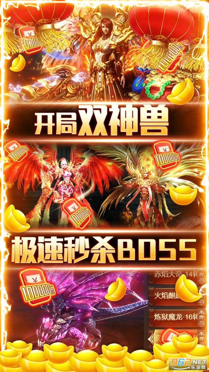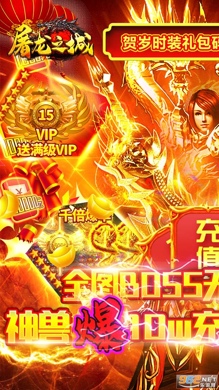 上线送vip15、10w元宝、绝版时装套!更轻轻松松爆10w充值,可激活每日充值活动额度,如获珍宝,独创的双神兽系统,出战即可百万战力!Boss掉充值,白嫖不是梦!超变态无敌资源千倍返利,全新珍宝阁一折购!击杀无尽Boss无限爆充值!最强福利传奇,邀你来战!