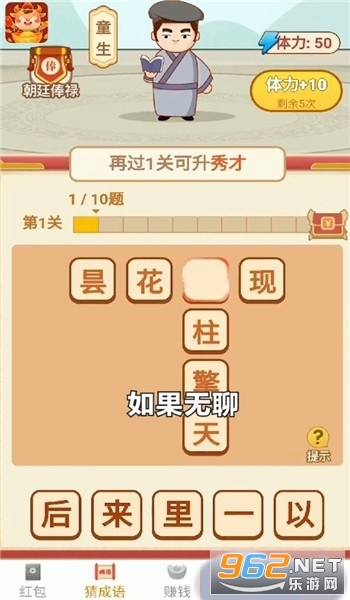 一款答题赚红包游戏,非常的简单,只要你来答题就有拿到红包的机会,快来挑战一下吧