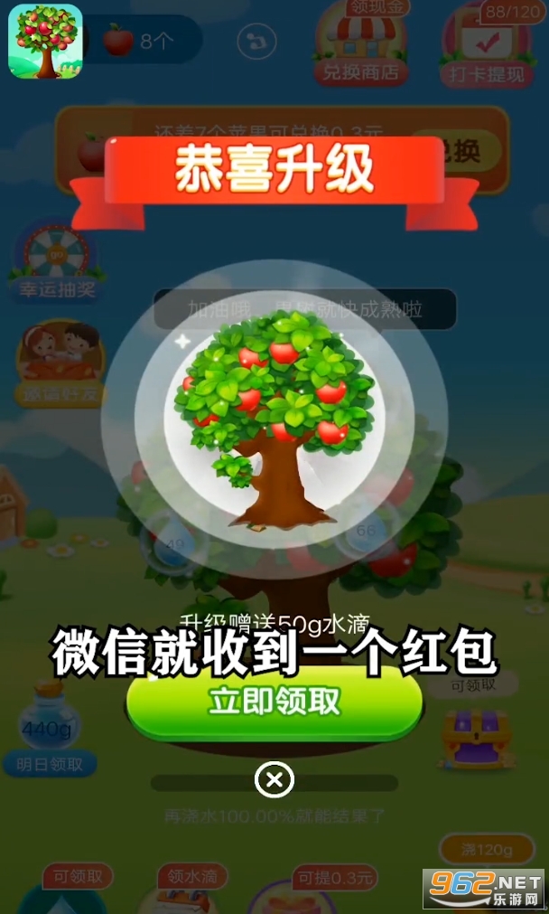 收集水滴,浇灌总数,导致iPhone,获得红包奖励。