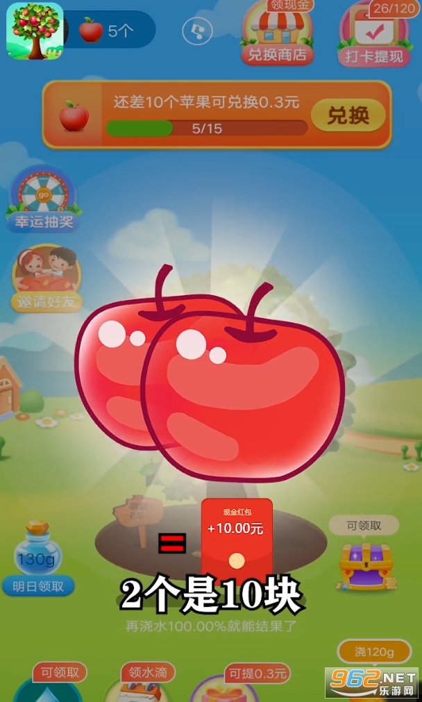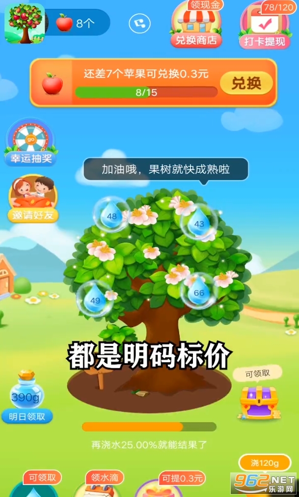 收集水滴,浇灌总数,导致iPhone,获得红包奖励。