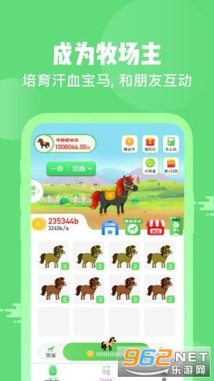 1.是一款可以分红的养马赚钱游戏,你们可以在这里合成更多的马匹类型,成为牧场主人,培养属于你们的汗血宝马!拥有轻松的挂机放置玩法模式,随时可以获得大额红包并自由提取。