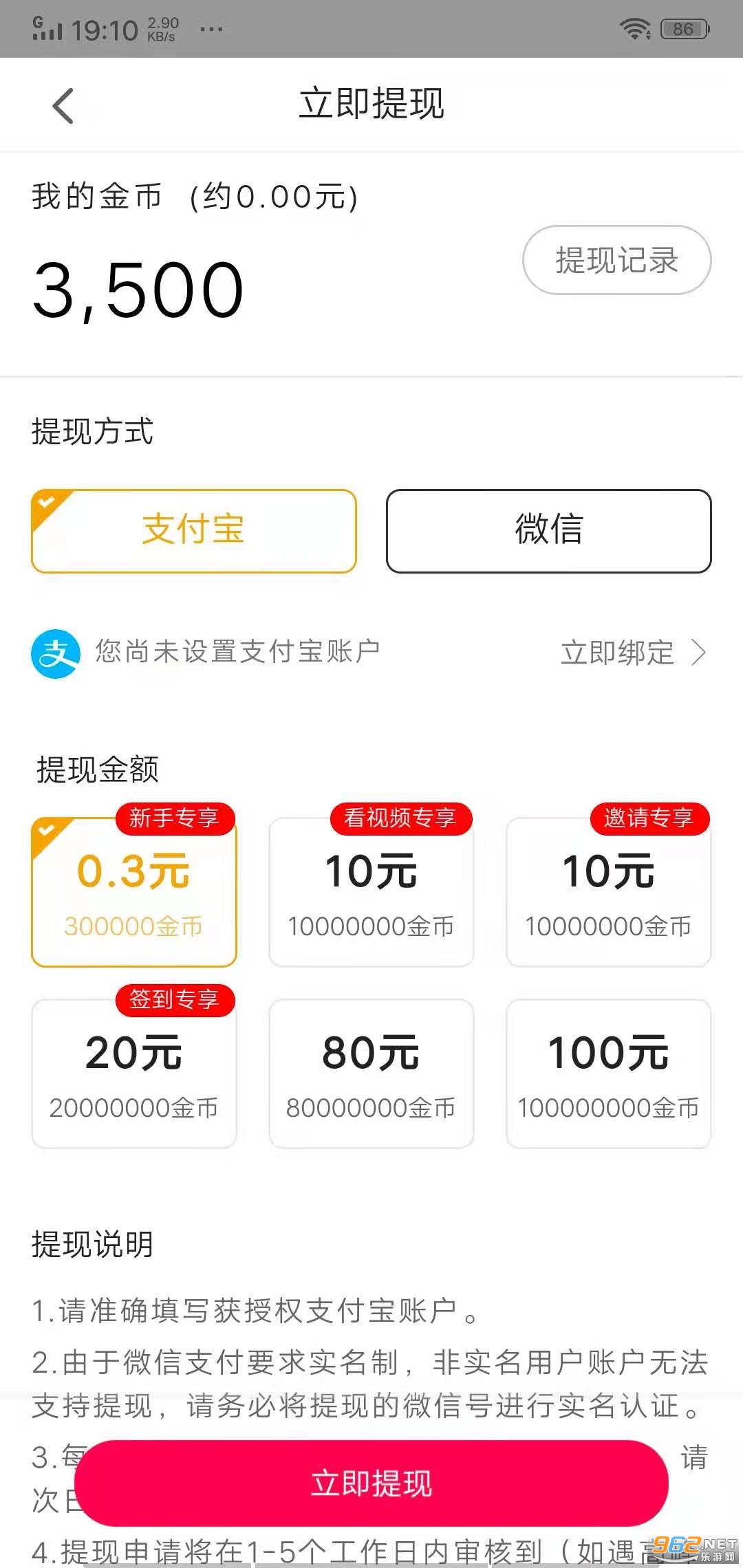 抖闻首次收入满0.3元可申请提现至钱包,后续满10元可申请,24小时内迅速到账!