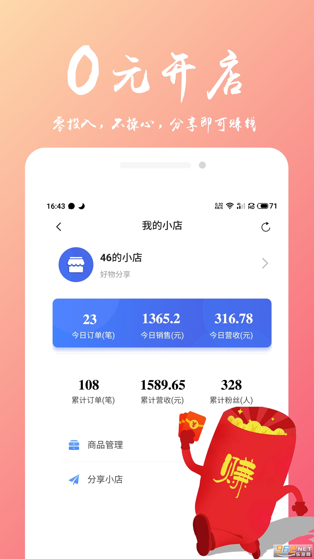 3、不需要你出成本,就可以成为商店的主人,省心还省钱的去满足到你的需求。