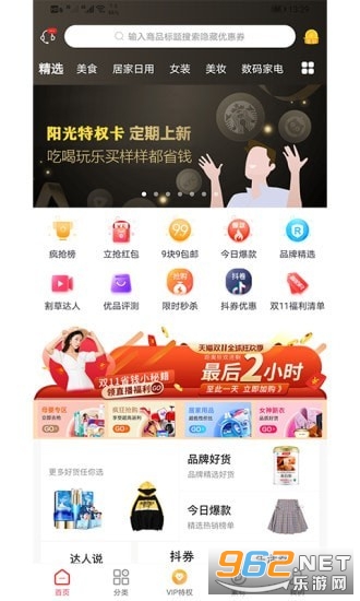 《阳光省钱app》是一款全新上线的省钱购物平台,超多海量商品任你选择,各大购物平台的内部隐藏优惠券统统在此,最少的钱买最好的商品,感兴趣就来962下载吧!