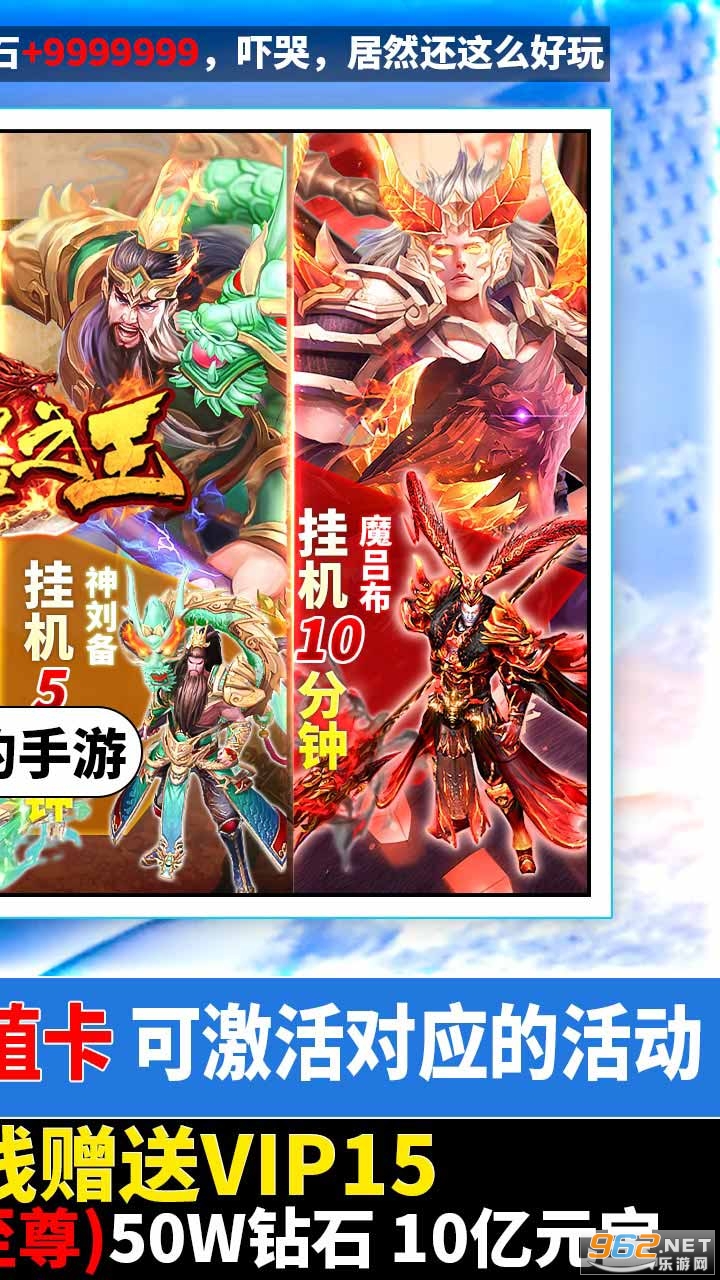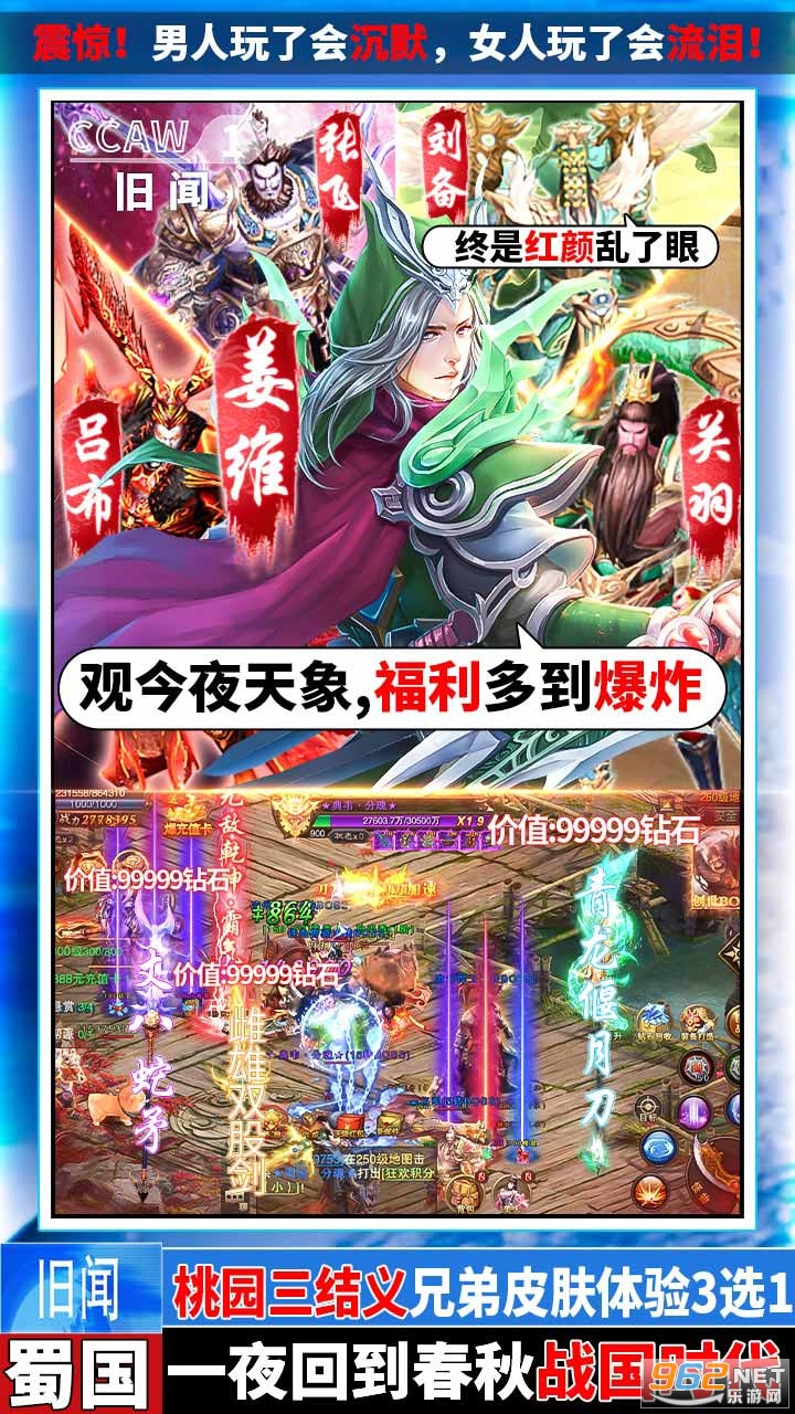 【武器之王】上线赠送VIP15,至尊3(黄金至尊),50W钻石,10亿元宝,立即前往领取,桃园三结义兄弟皮肤体验3选1,一夜回到春秋战国时代,终是红颜乱了眼,新增“创世装备”(蓝装&粉装&红装),有没创世那是天壤之别。