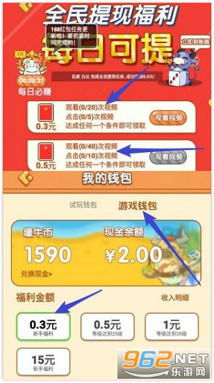 1、新人简单合成一下可领取限时分红牛的奖励,可直接提0.3;