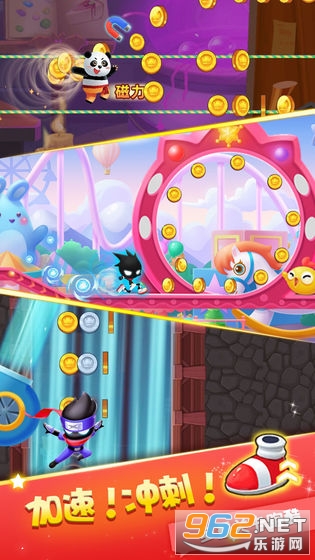 4、风格各异的游戏场景,魔法世界,童趣糖果屋等等,可以尽情体验每一段精彩的跑酷旅程。