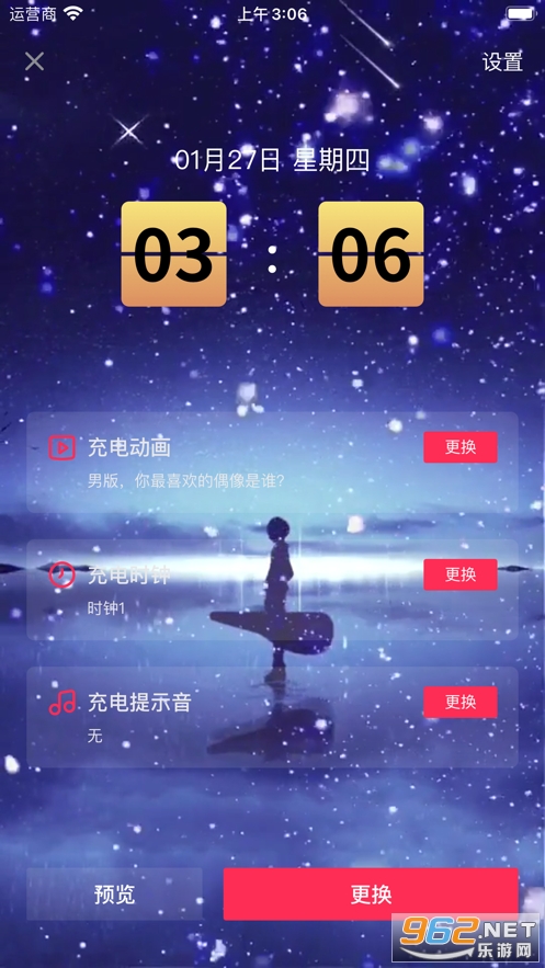 当手机连接数据线或放置无线充面板时程序将自动启动并开启充电动画显示,拔掉数据线或从无线充电面板移开时,程序会自动退出,方便又实用。