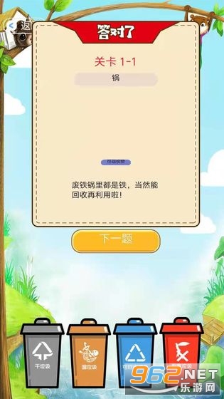 《全民垃圾分类王者最新版》是款玩起来特别开心的小游戏,游戏的玩法轻松简单,让玩家在游戏的过程中还能逐渐熟悉垃圾分类,对生活非常有帮助,玩家可以根据自己的知识储备回答题目,回答正确就可以到下一关,游戏非常有用,感兴趣的话就点击链接下载游戏试试看吧。