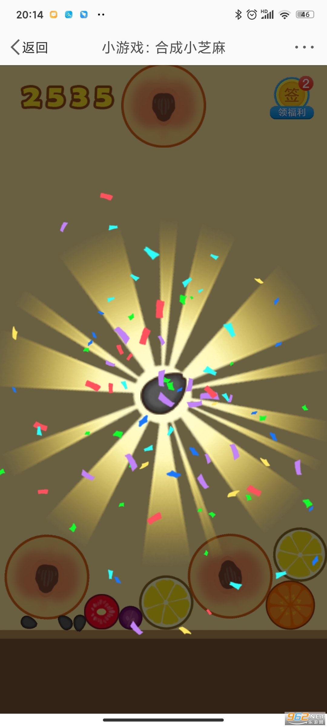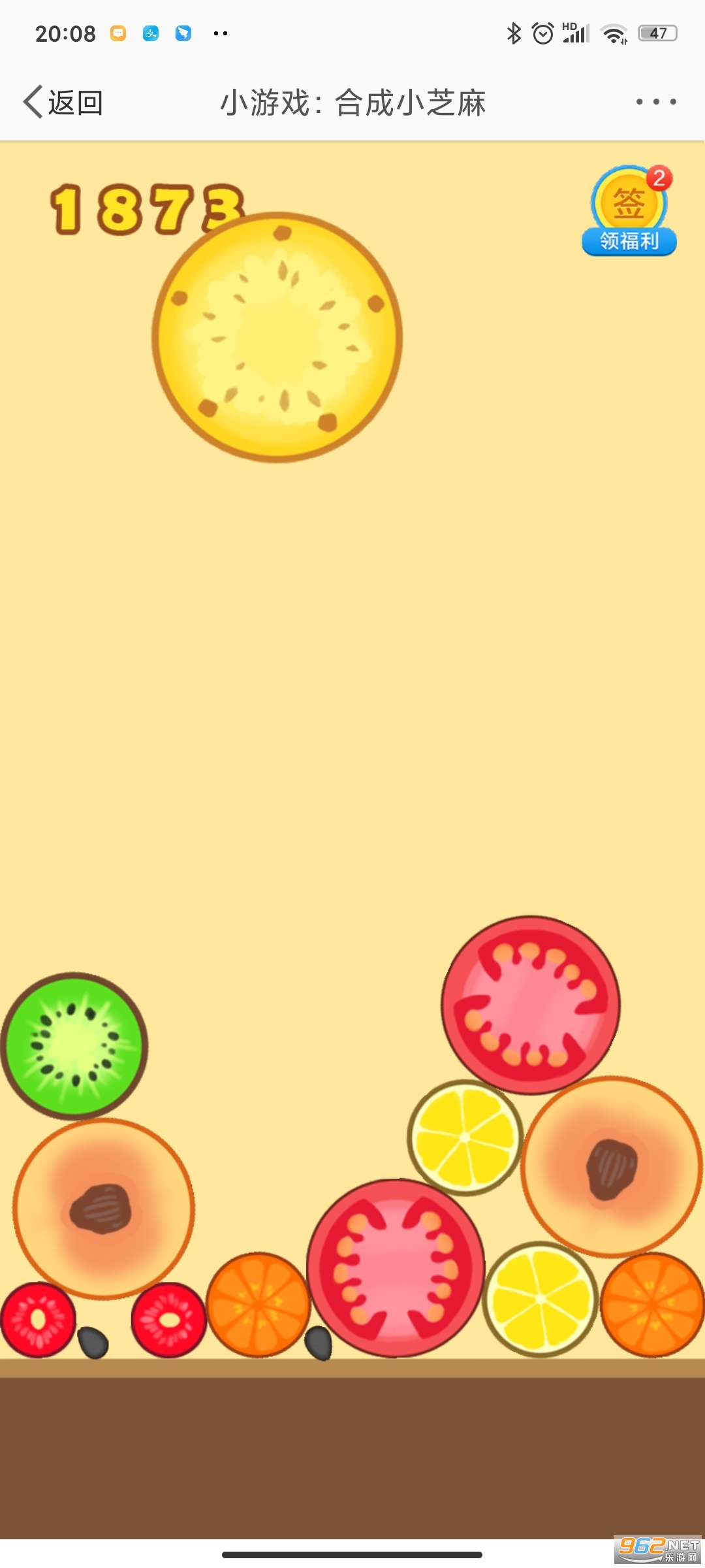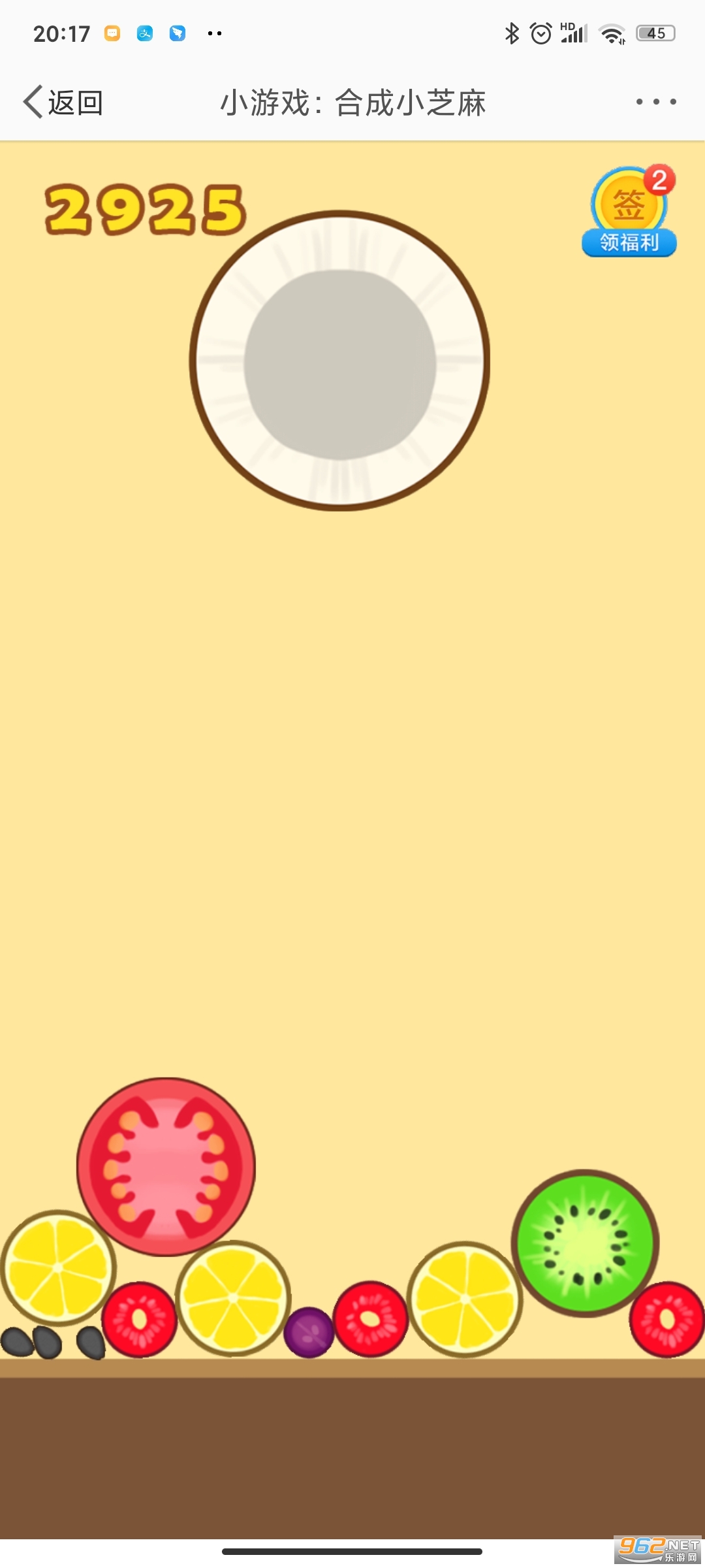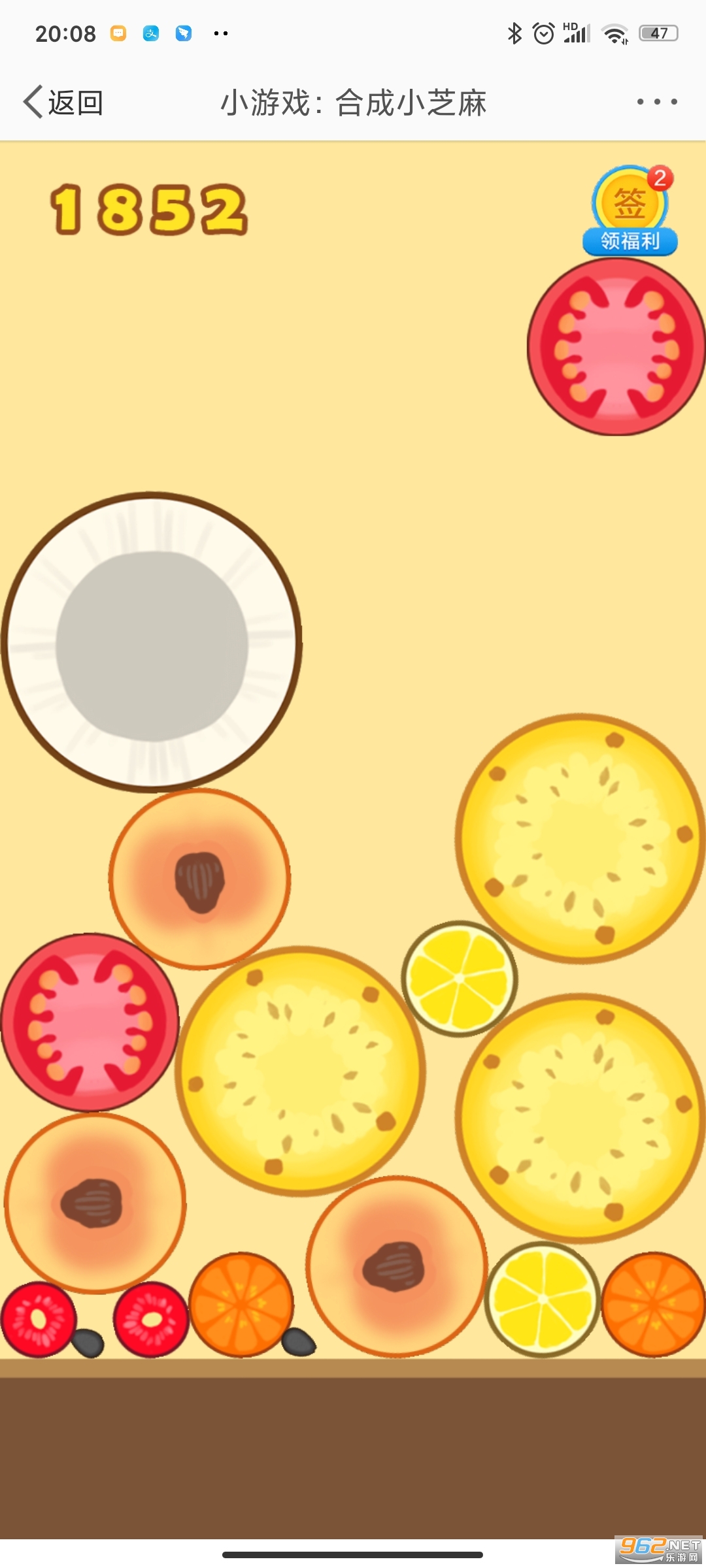 在线进行合成相应的水果,最终成功获得小芝麻;
