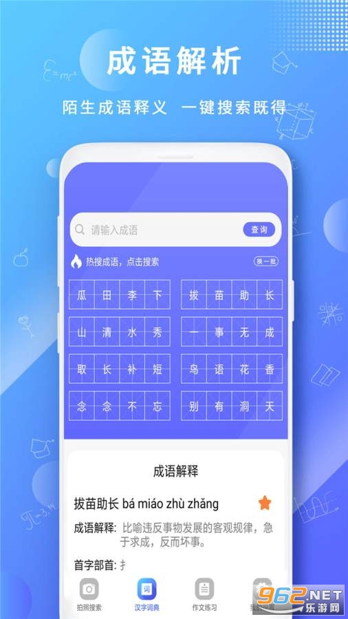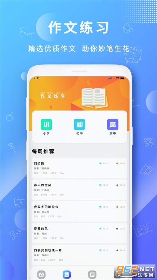 拍照搜题的软件,操作简单,直接拍照即可,数学、语文、英语等各个学科的题目都可以进行搜索,还可以查作文等,让孩子能够更好的进行学习,有需要的朋友可以下载试试。