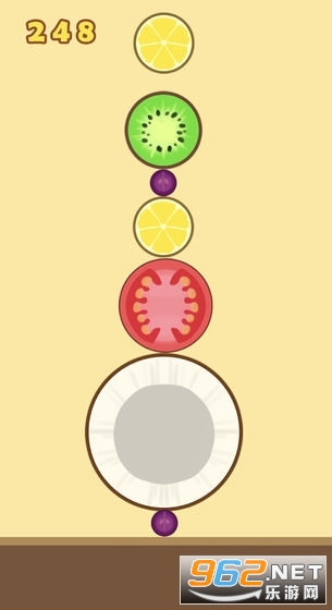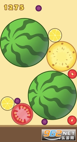 2) 一开始玩建议大家有序的排列水果,遵从一个角落水果最大,越往外水果越小的感觉(类似2048),这样容易产生连续合成而节约空间。而且一旦大水果在中间很容易堆太高导致游戏失败。
