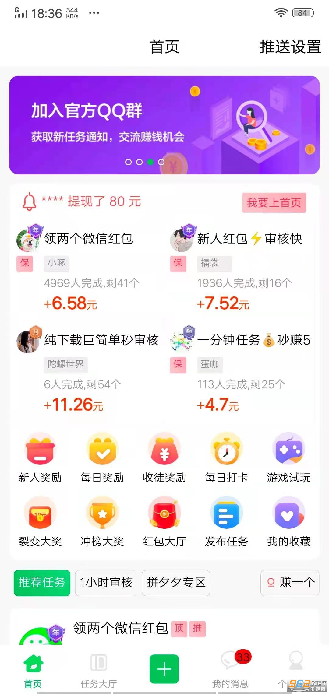 3、平台新增新人奖励、每日奖励、红包大厅、裂变大奖等活动,每天轻松赚几十元;