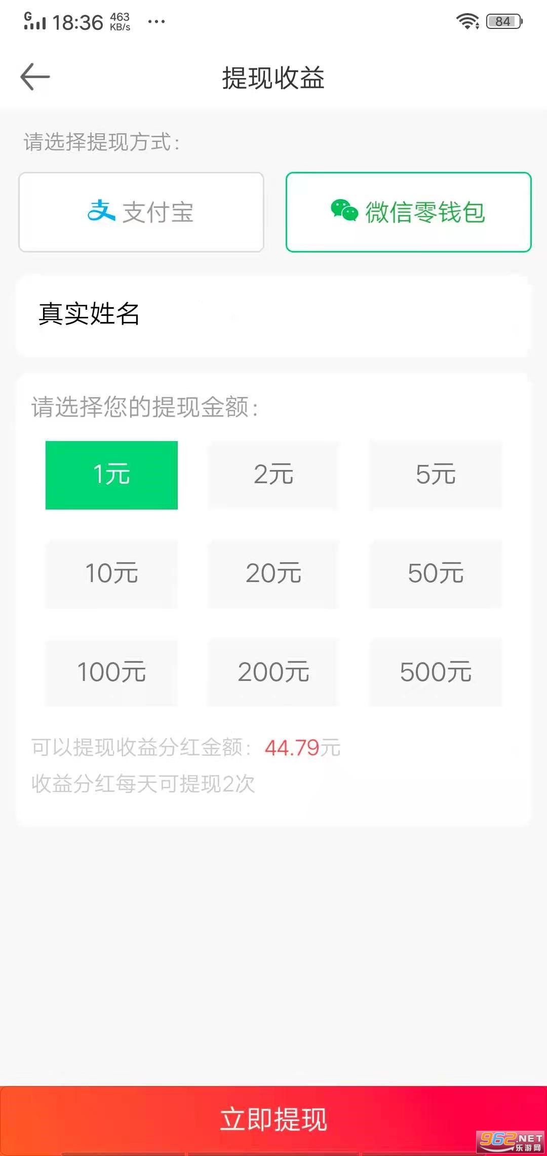 全民赞极速版收入满1元可申请提现,同时支持和支付宝,秒到账!