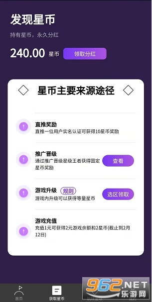 平台每月上新3款游戏平台,升级可领取大量星币奖励,星币可每日分红
