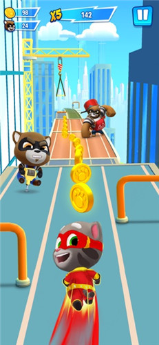 Talking Tom Hero Dash游戏采用卡通的画风,以跑酷类的玩法为主,玩家将需要控制着汤姆猫来进行冒险,一路的向前奔跑着,收集沿途的金币并注意避开各种障碍物。