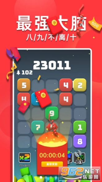 《八九不离10红包版》是一款有趣的2048消除游戏,游戏里面还会出现很多红包,游戏中玩家需要移动那些数字方块,让相同的数字去合成消除,不断挑战2048,甚至更大的数字,消除就能赚到红包,玩起来也很简单,快来试试吧。