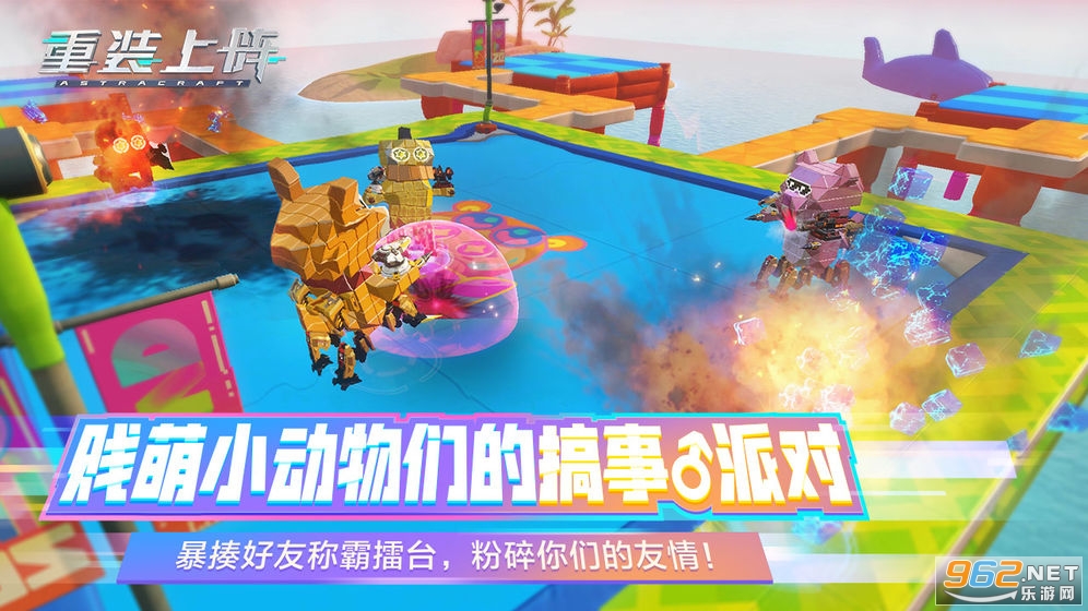 2、贱萌小动物们的搞事♂派对——和伙伴们打打闹闹,随着安全区越来越小,比分越来越接近,冰冻枪、糖果炸弹都掏出来啦!友情粉碎机?好友只会影响我开炮的速度,相爱相杀的派对,就缺你了!