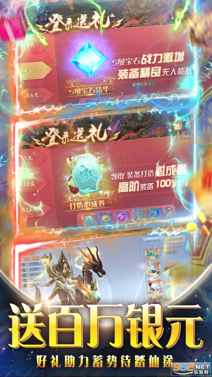 2、酷炫羽翼、强大坐骑、八大特戒应有尽有。